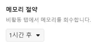 이런 사용법을 유도하는 만큼 메모리 관리에 신경써줍니다. 3년 전에 업로드됐기는 했지만 이 영상을 보면 비발디 브라우저가 가장 메모리 사용량이 적습니다. 또 메모리 회수 설정도 있어요. 이정도면 그냥 탭을 구석에 던져두고 살아도 될 것 같습니다.